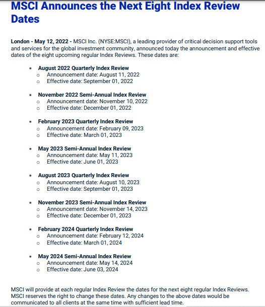 MSCI rebalancing 1st qtr 2023
