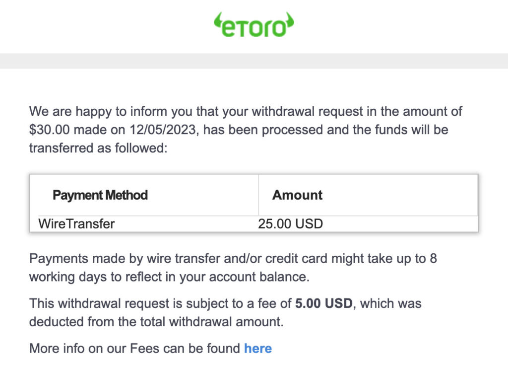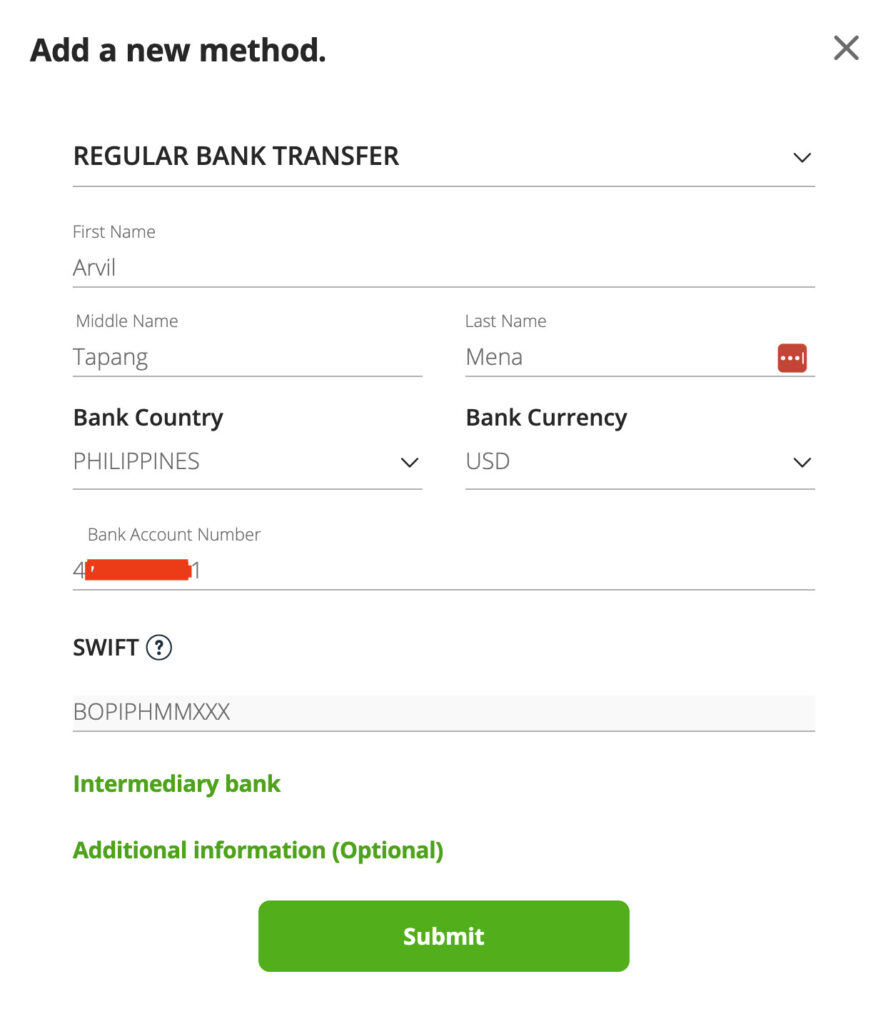 Withdraw money from Etoro to your USD Bank Account – Regular Bank Transfer method